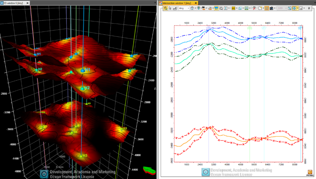 The stochastic time-to-depth conversion yields hundreds of realistic depth maps which are all consistent with the time interpretation, velocity constraints and picked formation tops. Thanks to its integrated, ensemble-based approach, Udomore also enables the use of advanced constraints for filtering the depth maps created. Three main types of advanced filters can be associated with the depth conversion: trap success, spill depth, segment connectivity and segment size. Furthermore, a “best-case” depth scenario can be derived from the set of filtered realizations, ensuring optimal consistency with existing petrophysical, production and testing data